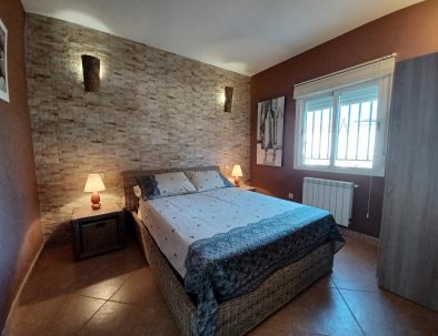 Con cama de matrimonio de 1,35, armario, espejo y dos mesillas con su correspondiente luz